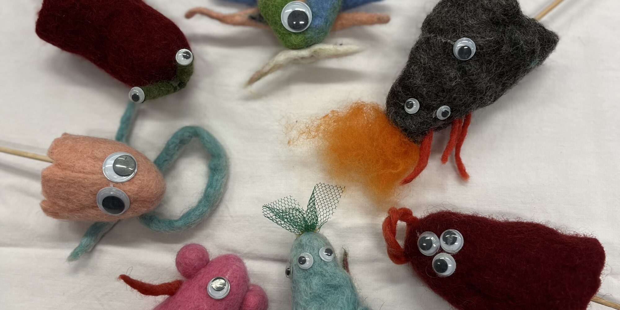 Eleverna får fantisera och tova sina egna rymdvarelser av ull.